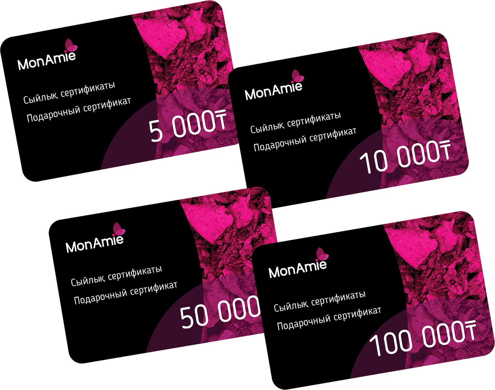 200 000 теңге сомадан басталатын MonAmie сыйлық сертификаттарын сатып алыңыз.