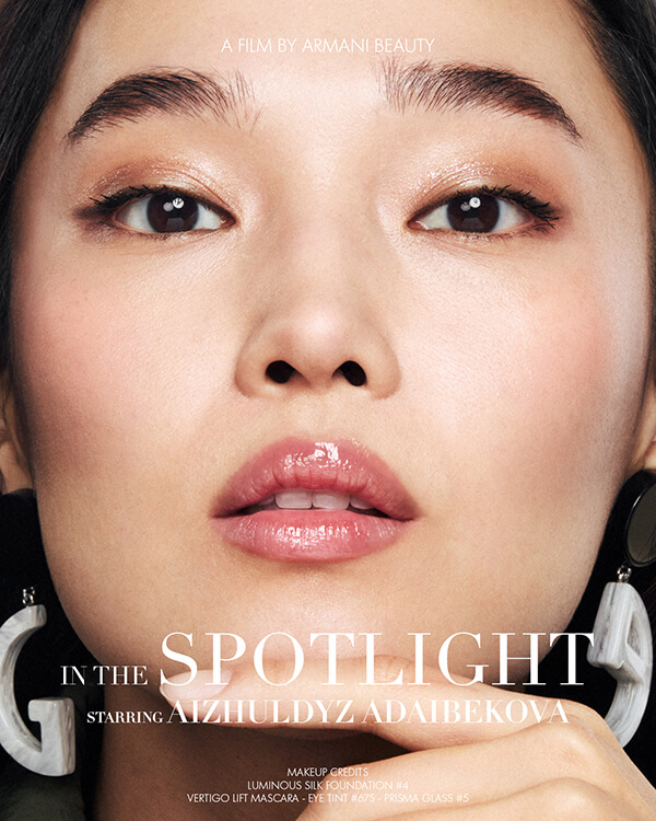 Айжулдыз Адайбекова в главных ролях вместе с Armani beauty, представляющая новую головокружительную тушь для ресниц VERTIGO LIFT, тональную основу LUMINOUS SILK с сияющим покрытием и невероятно нежный блеск для губ PRISMA GLASS.