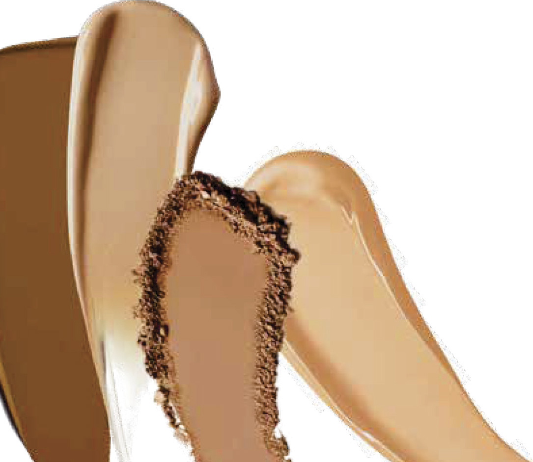 • тональных основ с жидкой/кремовой текстурой, бронзаторов и хайлайтеров.