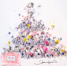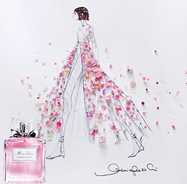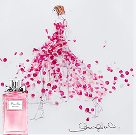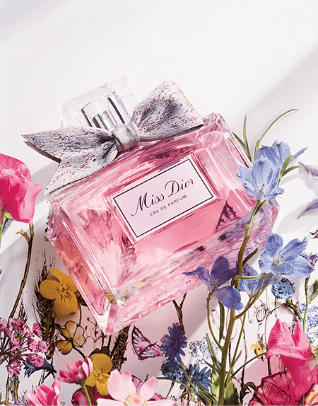 «Новый Miss Dior Eau de Parfum – это цветочный букет бархатных и чувственных Роз, украшенный ароматами свежести Лилии и Пионов и окутанный в пудровый Ирис.»