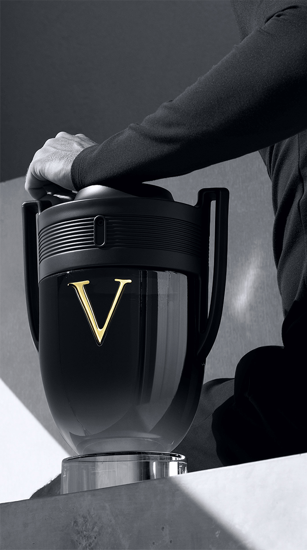 В твоих руках настоящий трофей. Впервые культовый флакон INVICTUS в новом черном глянцевом облачении. Матовая крышечка также исполнена в черном брутальном цвете на контрасте с глянцевым стеклом. В центре флакона сияет золотая буква V – обозначая интенсивность с заявкой на победу.
