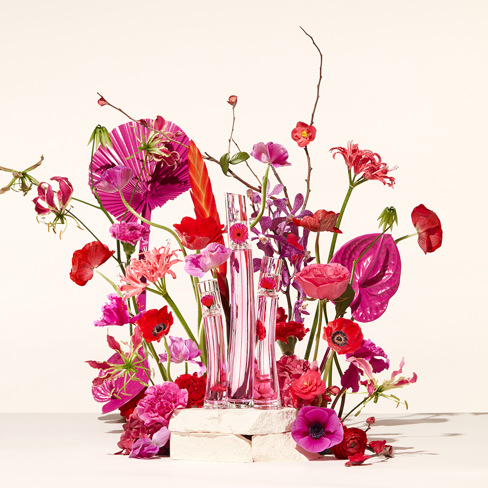 "FLOWER BY KENZO POPPY BOUQUET", новый цветочный аромат от KENZO. В композиции POPPY BOUQUET мак проявляет свое очарование в богатом цветочном букете. Свежая нота груши Наши предвосхищает яркий всплеск чувственного цветочного аккорда болгарской розы и гардении, перерастающий в изысканное благоухание миндально-древесных нот шлейфа.