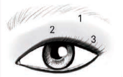 1. Нанесите светлый оттенок на всю поверхность века и внутренний уголок глаза.