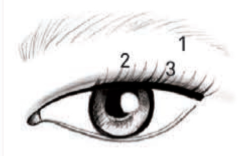 2. Выделите линии роста нижних и верхних ресниц средним оттенком и растушуйте его.
